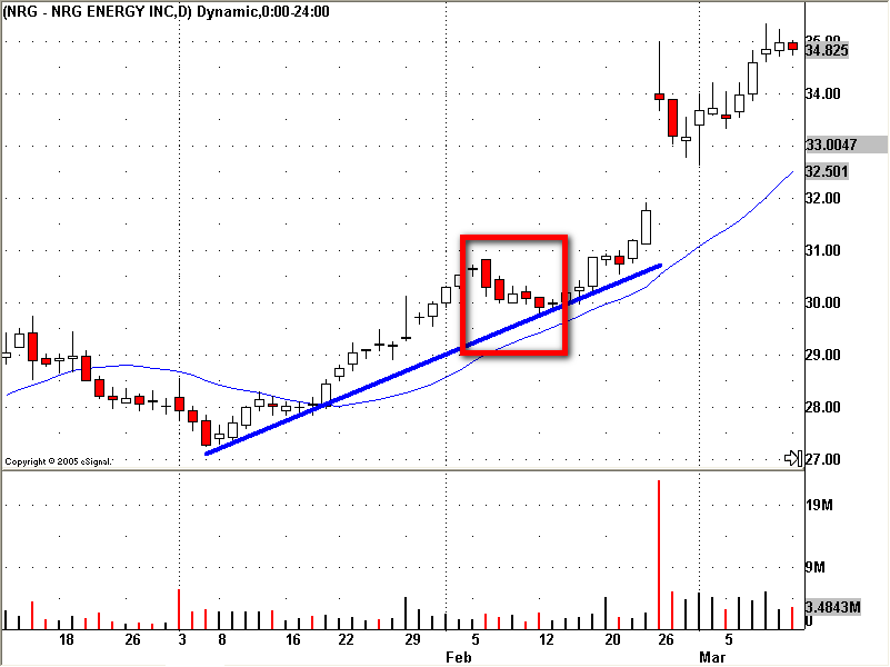 Pullback: A temporary decline in price following the upward trend. This pullback is usually on lower volume and represents a short-term profit-taking or a consolidation before the trend resumes. It's essential to note that the pullback should not be so deep that it erodes the majority of the prior uptrend.