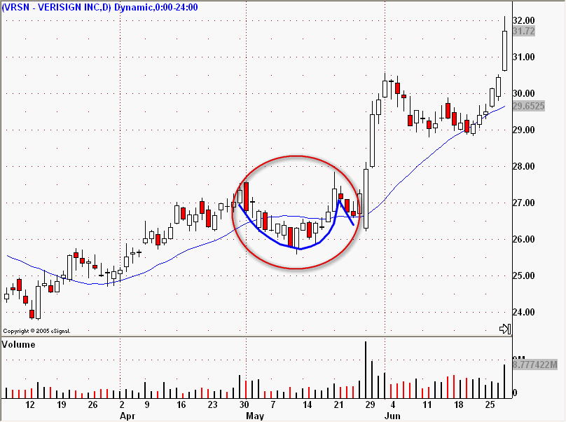 The power of a Cup and Handle lies in the fact that after hitting overhead resistance from the prior swing high, a very minor correction is put in. The stock then breaks out past resistance which can be a sign that demand for the security may be increasing.