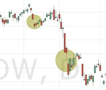 A Down Gap is an immediate price change from a high price to a low price that is reflected in a chart as an area where no trades took place in between the close of the previous bar and the open of the subsequent bar.