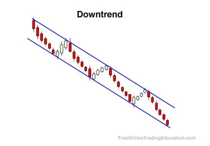 A downtrend is when the price action of a chart has an overall downward direction. Price action typically swings up and down during any given time frame, so a downtrend is a series of lower swing highs (peaks) and lower swing lows (valleys).