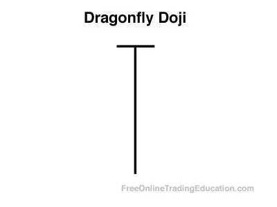 A Dragonfly Doji is a type of Doji candlestick that is formed when the open and close price of a bar are equal or nearly equal and also open and close very near the high of the bar.