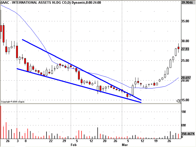 Background:The power of a Falling Wedge can be greater after a moderate downside move due to the possible decrease of overhead resistance as the pattern is formed.