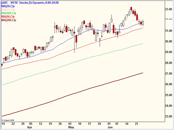 Typically, the best Moving Average signals occur when the price and volume of the chart being analyzed has also set up a bullish or bearish pattern. Using Moving Averages as additional confirmation of what has already been “read” in the chart can be a powerful addition to the assessment tools used by a technical analyst.