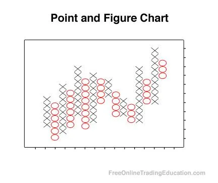 A Point and Figure Chart is a type of chart used by technical analysts to plot price movements without incorporating time. It is comprised of a series of stacked "X's" or "O's", with the "X's" representing rising price and the "O's" representing falling price.