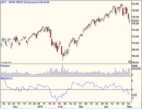 The Rate of Change (ROC) is considered a momentum indicator and measures the rate of change of price by displaying the difference between the current price and a previous price. This difference can be shown via points or percentage.