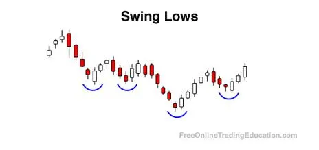 Practical use: Defining a Swing Low is helpful to technical analysts because many trendlines are drawn connecting the peaks of Swing Lows to each other. This is also helpful to begin gaining a deeper understanding of the sentiment read of a chart.