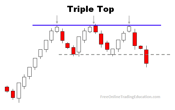Triple Tops can be a stronger bearish reversal pattern after further confirmation when the next swing/pivot high that is produced is even lower.